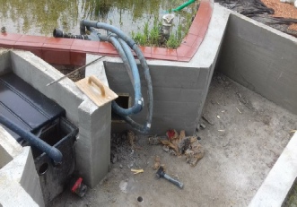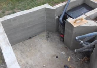 An dem folgenden Beispiel sieht man, dass ein Filter- und Pumpenschacht immer betoniert sein soll.
