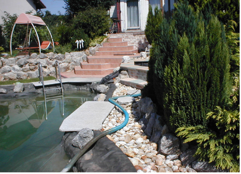 Hier sehen Sie den Umbau eines Schwimmteiches ohne Reinigung durch Pflanzen, also nur mit Filter und Umwälzpumpen. Bei dieser Art können (müssen) Sie Chlor und andere Chemikalien verwenden.